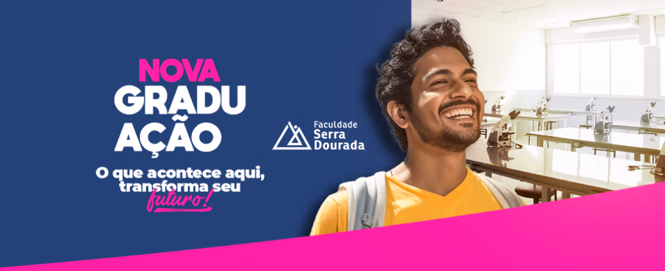 Pensando em mudar de área ou começar uma nova trajetória profissional? Com a Nova Graduação da Faculdade Serra Dourada, você tem todo o suporte necessário para recomeçar com segurança e propósito. Reinvente-se. O seu futuro começa com uma nova escolha!